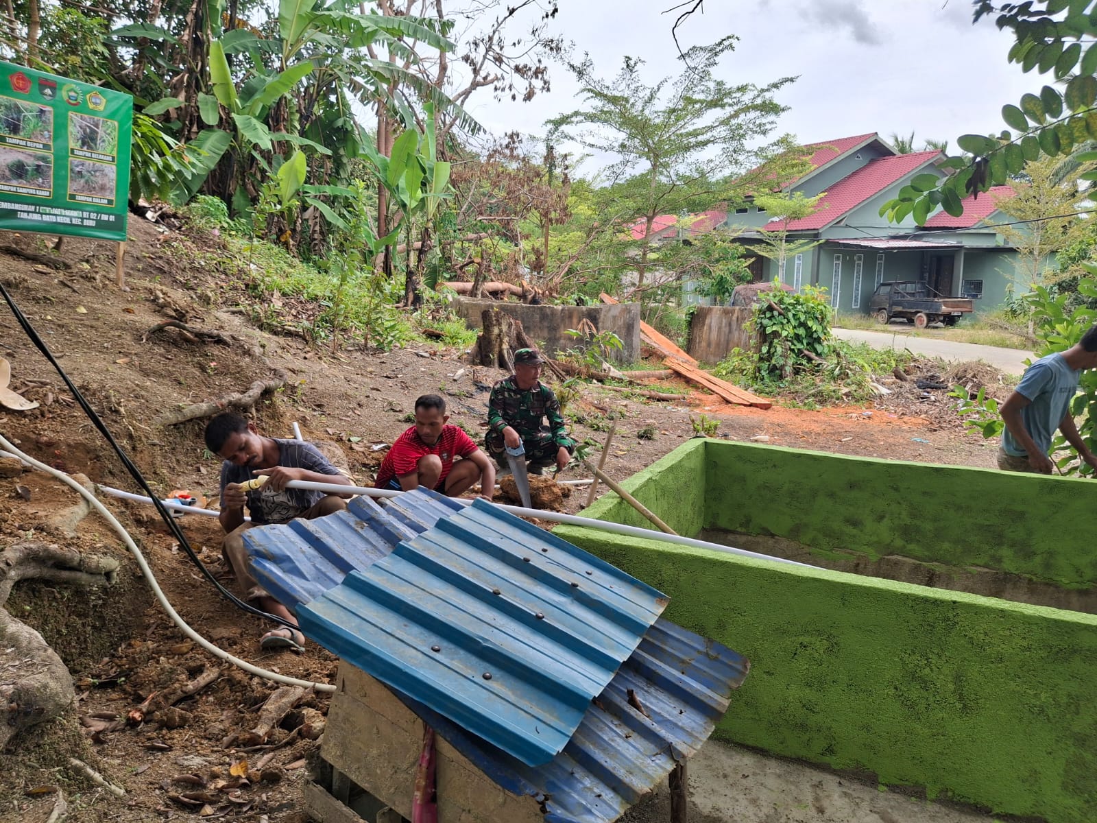 Satgas TMMD Bersama Warga Pasang Pipa Paralon Salurkan Air ke Rumah Warga