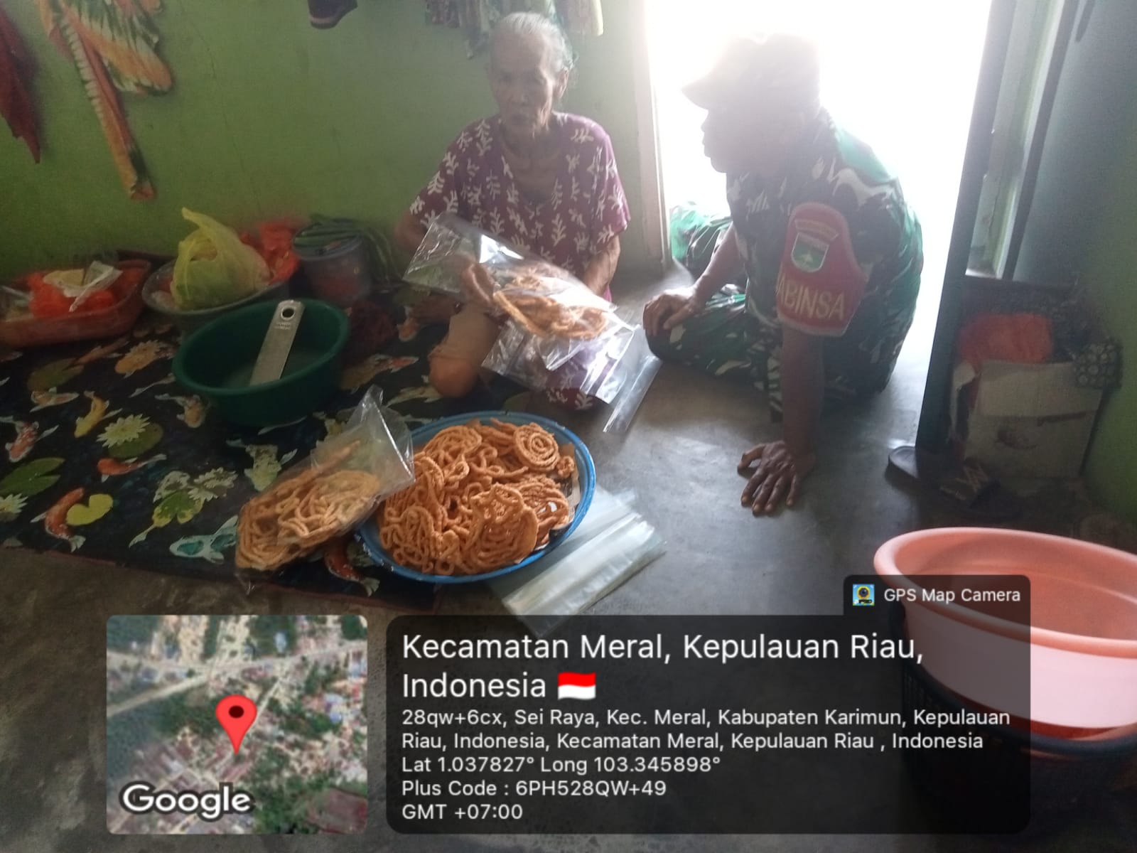 Karimun, 11 Maret 2026 – Serka Atmaja, Babinsa Desa Pangke Koramil 04/Tebing Kodim 0317/TBK, lakukan komsos dengan Ibu Enah, penjual kuwe akar kelapa di Kampung Suka Jadi RW 02 Desa Pangke, Rabu (11/3) pukul 10.00 WIB.